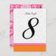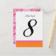 Chique e moderno, número de mesa com monograma em damasco rosa e laranja totalmente personalizável. Deixe seu estilo brilhar através destes convites. Os cartões e ímãs de save the date correspondentes estão disponíveis nesta loja.