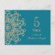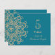 Um belo JEWEL TONED AQUAMARINE AQUA BLUE e um cartão de número de mesa de casamento de ouro com um exótico e UPSCALE LUXE indiano inspiraram medalhão de sari ornamental como um padrão com um design de SUNBURST floral e lotus. Esta elegante e bela carta de números de mesas estilo indiano é perfeita para qualquer ocasião formal ou especial com um tema indonésio, asiático ou marroquino ou árabe ALADDIN. © Chrissy H. Studios, LLC. Todos os Direitos Reservados.