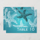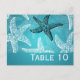 Design de "Número de Tabela" de Casamento de Praia com design azul de Starfish romântico e texto de número de tabela personalizado. Imprima sua família e amigos com este na moda e design moderno. Totalmente personalizável! Fácil de usar e fácil de personalizar. Faça o pedido hoje!