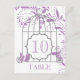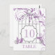 Números de mesa de casamento violeta africana. Cartões de números de gaiolas de pássaros em violeta africana também conhecida como roxo, lilás ou lavanda. Personalize o número da tabela e o nome da mesa.