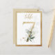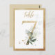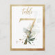 Belo cartão de número de mesa com um motivo botânico - uma ilustração aquosa de folhagem verde e números de efeito do ouro. Mesa 7. Verifique todos os números disponíveis