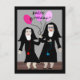 Carteira Católica de Aniversário, canecas, sacos de tote, postais e botões. Duas freiras, uma segurando balões rosa. Adorável!