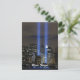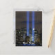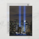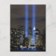 Nunca se esqueça, Lembrem-se das pessoas afetadas pela tragédia de 11 de setembro nas torres gêmeas do centro de comércio mundial em Nova Iorque. Esta fotografia (do DOD dos EUA) mostra as torres memoriais de luz em azul neon brilhante torcendo sobre os arranha-céus da cidade da linha escura da noite e luzes onde os prédios estavam. Apoie a ocasião e mostre o seu cuidado e preocupação como cidadão Patriótico dos EUA.