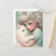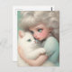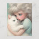 "Nunca Sem Você" Um doce postal de um amante de gato, abraçando seu gato peludo branco com muita ternura. As cores são pastéis. Este trabalho de arte retrata um belo momento de amor.