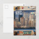 This postcard captures the unmistakable rhythm of New York City, where towering skyscrapers rise above the water and the skyline glows with urban energy. Surrounded by travel‑themed accents—maps, stamps, and the thrill of exploration—the design celebrates the spirit of a city that inspires dreamers from around the world. A perfect keepsake for travelers, city lovers, and anyone captivated by the pulse of NYC.