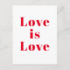 Cartão-postal branco vermelho "Amor é Amor"