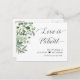 Modelo de Anúncio de Adiamento de Evento - Cartão Postal Elegante de Folhas Verdes de Eucalipto Love is Patient.