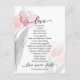 Citação inspiradora de escrituras para casamento, cartão de noivado apresenta um design moderno delicado de aquarela floral esboçada, incluindo tulipas simples da primavera rosa com folhas verdes e cinzas. Apresenta versículos bíblicos 1 Coríntios 13:4-8, "O amor é paciente, o amor é bondoso. Não inveja, não se vangloria, não se orgulha. Não é rude, não é egoísta, não se irrita facilmente, não guarda registro dos erros. O amor não se deleita com o mal, mas se alegra com a verdade. Sempre protege, sempre confia, sempre espera, sempre persevera. O amor nunca falha." O cumprimento pode ser personalizado e o cartão usado para muitas ocasiões ou excluído para uma nota escrita à mão.