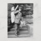 Foto da safra em preto-e-branco de um porta-correio de uniforme, nas etapas do Serviço de Posto. Bolsas de e-mail podem ser vistas em segundo plano. Foto c. 1914 por Harris e Ewing