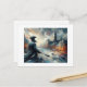 Uma pessoa com barba longa e um chapéu segura um funcionarios enquanto fica parada na água, com um prédio histórico e um céu dramático ao fundo. A cena parece dinâmica e turbulenta, criada com traçados giratórios e cores vibrantes.