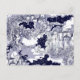 As nuvens rolam por cima, as estrelas brilham, as ondas caem sobre as rochas e as Sereias se esmagam e natações. Design branco e azul clássico.