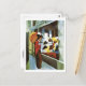 Um cartão-postal de belas artes com a pintura do expressionista alemão August Macke (1887-1914) intitulada Compro Hat (1914). Uma mulher com uma janela de parasita laranja comprando em um compro de chapéu.