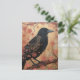 Um belo corvo sentado em um galho com flores ao redor pintura de mídia mista gerada por IA