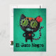 Outra arte do Dia de Los Muertos desta vez é sobre gatos. Este gato bonitinho com rosa vermelha enfiado atrás de sua orelha e uma maravilhosa maquiagem de crânio de açúcar está pronto para a comemoração do Dia dos Mortos. Este gato mexicano é uma ideia perfeita para presentes para amantes de gatos.
