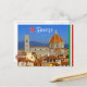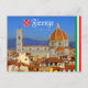 Esta imagem de Florença, Itália, apresenta o florence Dome e a Torre Bell de Giotto, o mais importante complexo monumento florentino e atrações turísticas, o símbolo da cidade - Fleur-de-Lys, e a bandeira italiana (la bandiera italiana).