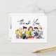 Expresse sua gratidão com o Cartão de Agradecimento de Chá de Bebê do Grupo do Charlie Brown! Com os queridos personagens de Peanuts, este cartão alegre é perfeito para enviar agradecimentos sinceros após um chá de bebê temático de Peanuts. Personalize-o com sua mensagem para torná-lo ainda mais especial e deixe Snoopy e a turma trazerem alegria para suas notas de agradecimento!