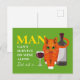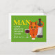 O cartão verde com um divertido design geométrico de gato ruivo, juntamente com a frase engraçada 'O homem não pode sobreviver apenas com vinho... papai disse isso', adiciona um toque lúdico à mensagem. Ele captura a leveza do sentimento, enfatizando a importância do equilíbrio e não depender apenas de uma coisa.
