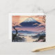 Alta qualidade, no estilo mesmerizante de Katsushika Hokusai, uma representação espetacular do icônico Monte Fuji do Japão no nascer do sol. O brilho etéreo da aurora pinta os céus com tons de pínus macios, laranjas, e púrpuras, lançando uma atmosfera serena sobre a paisagem. Escolha do excelente para um cartão postal.