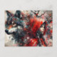 Cartão Postal O Lobo Vê Sobre O Pequeno Grunge Vermelho
