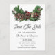 Natal de inverno Salve a data Cartão postal contém pinho, folhas de pinho, arranjo de groselhas ocas e modelo de texto.Um design perfeito para o inverno ou tema de casamento de Natal.Clique no botão personalizar para personalizá-lo com seu texto ou nome.Visite gentilmente minha loja " loveyouart" para outros designs ou similares. .