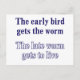 Humorístico dizer sobre os benefícios de ser preguiçoso e dormir em casa! Lê: "O pássaro primitivo recebe o verme. O verme tardio consegue viver."