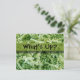 A fotografia de close-up captura tiras de papel ondulado e picado verde na frente do cartão postal com a mesma imagem de opacidade reduzida no verso. Personalize o texto do modelo com sua mensagem.