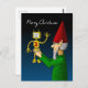 Os elfos da oficina de presentes de Natal dos Papais noeis exibem um robô de brinquedo que é seu último design.