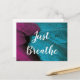 Este cartão do texto do costume caracteriza penas bonitas de um tom da jóia projeta em máscaras cor-de-rosa escuras do verde azul da magenta e da cerceta. A mensagem no roteiro branco lembra-nos retardar e "apenas respire". Estes cartão são customizáveis. Você pode mudar o texto, pia batismal, cor de texto se você deseja. Apenas bata o botão do personalizamento para incorporar seu próprio texto, ou bater o botão da personalização para fazer todo o estilo muda. Faz um grande presente ou uma decoração de inspiração!