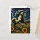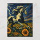 Um unicórnio a galopar através de um campo de girassol numa tempestade.