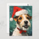 Desenho de Natal colorido e alegre com um Terrier de Russel usando um chapéu de Papai Noel.