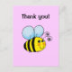 Cartão de agradecimento de abelhão fofo, a cor do fundo e o texto são personalizáveis.