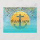 O belo casamento e outras ocasiões cartão de agradecimento com confete brilhante em tons de azul celeste e noite em forma de âncora náutica dará uma aparência elegante e pacífica.
