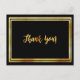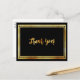 Um cartão de agradecimento para um aniversário marcante. Uma cor de fundo preta e uma moldura em ouro falso. Na frente, um estilo de letra à mão e o texto: Obrigado!
