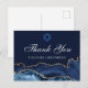 O elegante azul marinho e o ágata dourada decoram o lado deste cartão postal moderno de agradecimento Bat Mitzvah. Mazel Tov! Personalize com seu nome sob a Estrela de Davi. Cartão postal perfeito para uma família judia chic e elegante que celebra uma menina sendo chamada ao Torá.