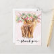 Cartão Postal Obrigado Baby Shower Vaca das Terras Altas Rosa