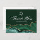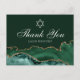 O elegante ágata verde escuro e dourado decora a lateral deste cartão moderno de agradecimento de Bar Mitzvah. Personalize com seu nome sob a Estrela de Davi. Cartões perfeitos para uma família judia que celebra um menino sendo chamado à Torá.