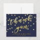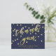 NewParkLane - Cartão-postal Elegante, com 'Obrigado' em tipografia elegante de folha de ouro falsa, contra um fundo azul-marinho com confetes dourados. Fácil de personalizar no Zazzle com seus próprios nomes, data ou outro texto para um design personalizado. Todo o estilo de texto, cores e tamanhos podem ser modificados para atender às suas necessidades. Você também pode alterar a cor do fundo para qualquer cor que preferir.