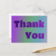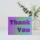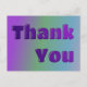 As palavras "Obrigado", em roxo, num fundo azul, verde e roxo