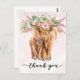Cartão Postal Obrigado Chá de fraldas Highland Cow Pink