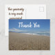 Deixe alguém saber que você o aprecia com este lindo cartão postal de foto da praia da costa do Pacífico. A longa extensão de areia marrom inclina-se em direção às ondas do oceano azul. Um céu azul brilhante com uma nuvem branca fofa fornece o pano de fundo para "Obrigado" que é apresentado em fonte branca. O verso apresenta palavras adicionais de agradecimento. Todo o texto pode ser facilmente personalizado se desejar.
