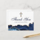 O azul-marinho moderno e o ágate dourado decoram este elegante cartão de agradecimento de confirmação para a celebração da sua cerimônia cristã. Personalize com um nome sob a cruz para uma mensagem religiosa linda para uma festa de igreja Metodista ou Católica.