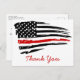 Cartões de agradecimentos fino da Linha Vermelha - bandeira americana nas cores do Pavilhão do Bombeiro, design a branco angustiado. Este obrigado de bombeiro que você é perfeito para obrigado de bombeiro, ou departamentos de bombeiros. COPYRIGHT © 2020 Judy Burrows, Black Dog Art - Todos Os Direitos Reservados. Cartão-postal do Obrigado do Bombeiro Thin Red Line