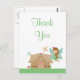 Este obrigado de meninas que você posta tem um tema de fada. Há uma fada de cabelos castanhos ao lado de uma casinha de fadas com borboletas voando por toda a parte. Você pode personalizar facilmente o seu obrigado no verso. ©2010 JD Digi Designs com