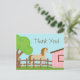 A obrigado de festa de aniversário dessa garota que você faz o postal tem um tema de cavalo/fazenda/andar. Na frente, há um celeiro cor-de-rosa perto de uma cerca com muitas flores crescendo na base. Há um cavalo macio e colorido atrás da cerca. No verso, você pode personalizar facilmente o seu obrigado da mensagem. Gráficos por Goodness & Fun em MyGrafico.com.