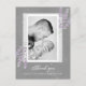 Foto do bebê do anúncio de nascimento Obrigado Cartaz modelo, com flores lavandas de aquarela em um fundo de cinza.
