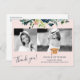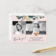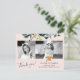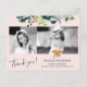 Obrigado de colagem de fotos da graduação de vidro moderno, elegante e floral, você pode fazer um cartão postal com um roteiro de tipografia totalmente editável, com uma borda botânica aquosa, com folhagem e folhas, e um falso chapéu de formando de ouro de cobre sobre um fundo cor-de-rosa (cor variável). +++++++++++++ Fácil de personalizar com fotos do formando 2, nome, ano inicial de monograma, escola e graduação e seu texto personalizado em ambos os lados!