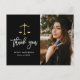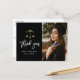 Este design apresenta uma fotografia personalizada com um boné dourado e um texto de script de pincel branco. Sinta-se livre para mudar a imagem e o obrigado que você envia no verso.