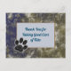 Você tem alguém que cuida de seus animais de estimação quando está de férias ou alguém que passeia com seu cachorro diariamente? Este cartão-postal de agradecimento apresenta um padrão abstrato azul e dourado que é elegante e se assemelha a um padrão de mármore. Um retângulo azul claro e dourado sólido é centralizado na frente deste cartão-postal e fornece o fundo para suas palavras de agradecimento. Uma pegada preta de pata é apresentada na parte inferior do retângulo sólido central. "Obrigado por cuidar bem do Fido" pode ser facilmente personalizado com o nome do seu animal de estimação.
