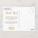Cartão Postal Obrigado Dourado floral Pastel do casamento do