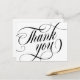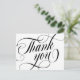 Cartão de agradecimento com um agradecimento impresso em letra preta bonita e roscada.